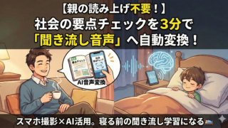 親の読み上げ不要!社会の「要点チェック」をAIで「聞き流し音声」に変換する時短ハック【中学受験】